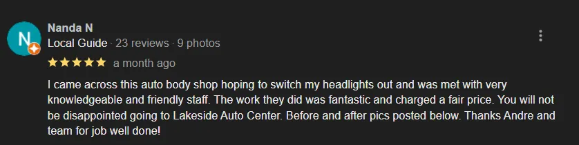 Your vehicle will be in the hands of certified experts committed to delivering superior auto body and repair solutions. At Lakeside Auto Center, we ensure precision, quality, and care with every service—because your car deserves the best.
